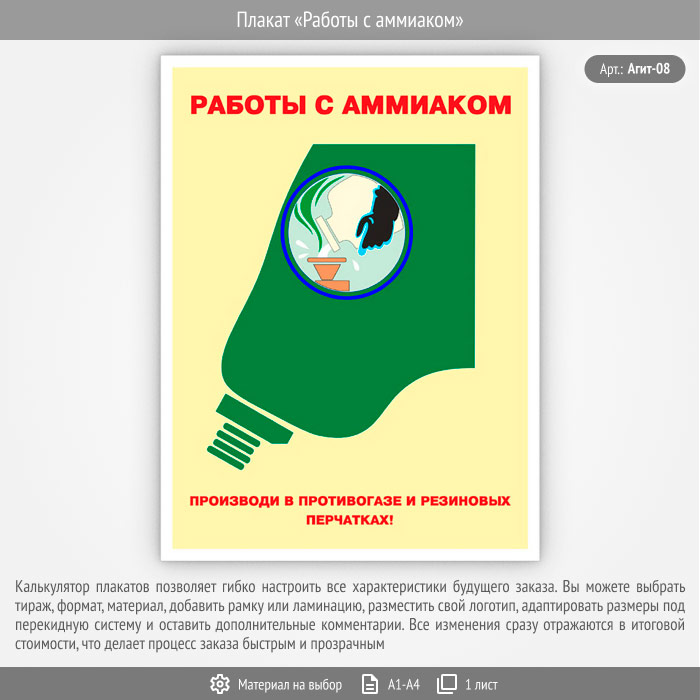 Плакат «Работы с аммиаком» (Агит-08, 1 лист) в Бердске купить