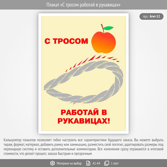 Плакат «С тросом работай в рукавицах» (Агит-12, 1 лист) в Бердске купить