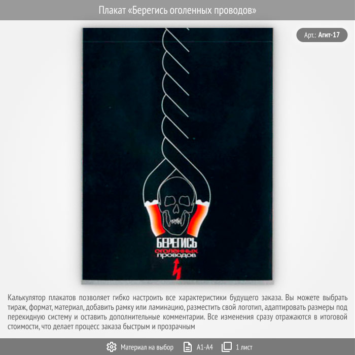 Плакат «Берегись оголенных проводов» (Агит-17, 1 лист) в Бердске купить