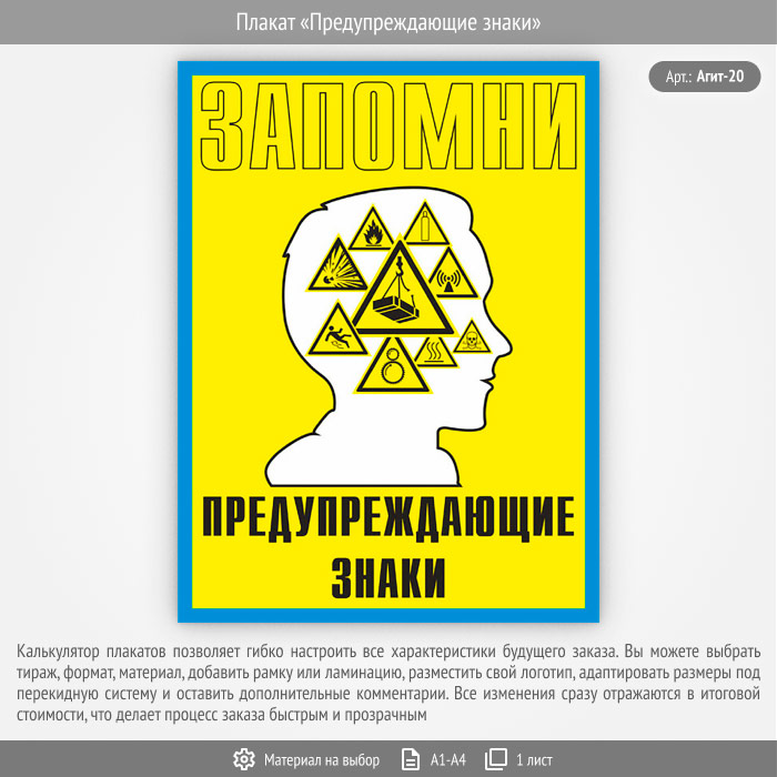 Плакат «Предупреждающие знаки» (Агит-20, 1 лист) в Бердске купить