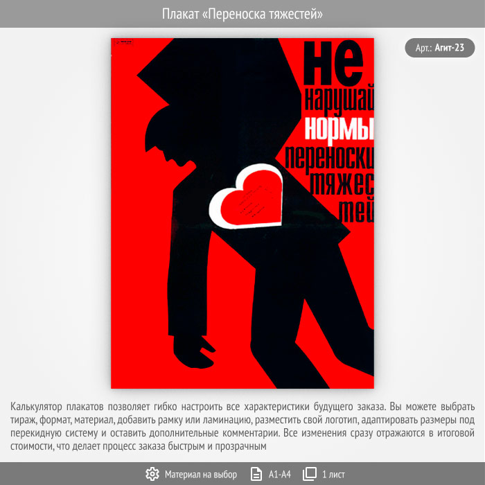 Плакат «Переноска тяжестей» (Агит-23, 1 лист) в Бердске купить