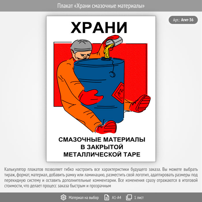 Плакат «Храни смазочные материалы» (Агит-36, 1 лист) в Бердске купить
