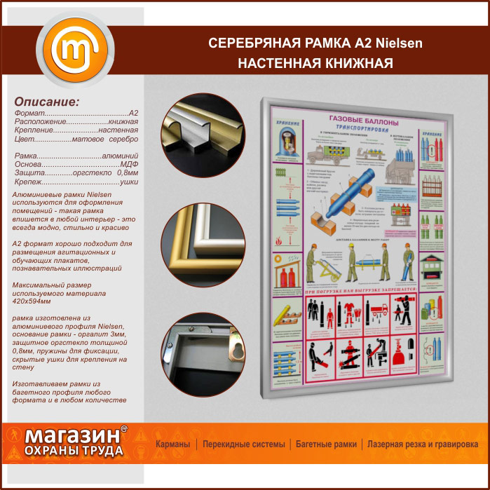 Багетная настенная рамка «Nielsen» А2 формата, книжная, матовое серебро в Бердске купить