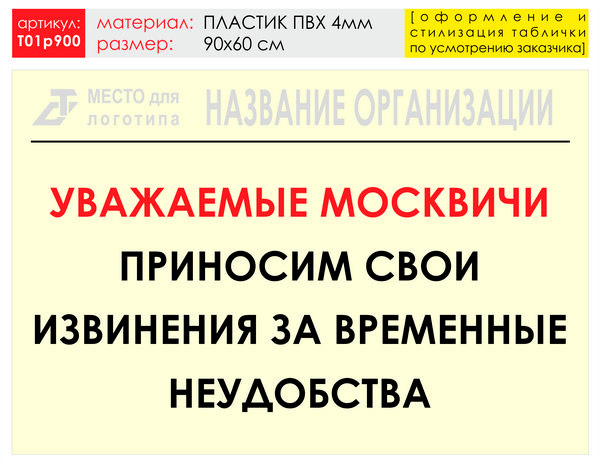 Баннер «Извинения», T01 (пластик 4 мм, 90х60 см) в Бердске купить