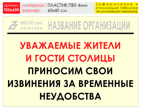 Баннер «Извинения», T02 (пластик 4 мм, 60х40 см) в Бердске купить