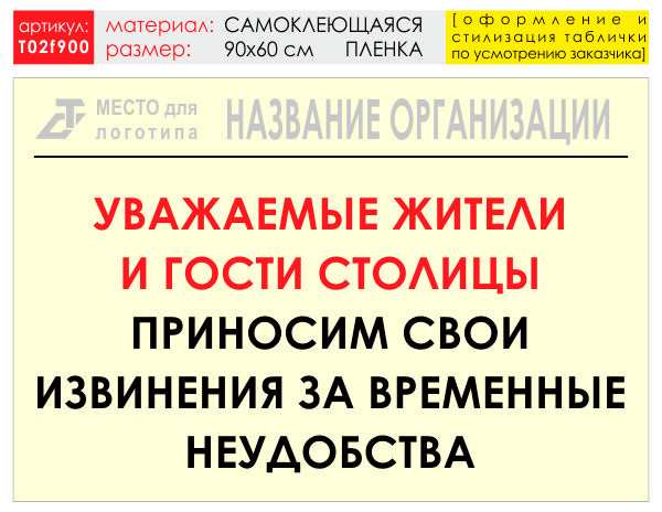 Баннер «Извинения», T02 (самоклеящаяся плёнка, 90х60 см) в Бердске купить