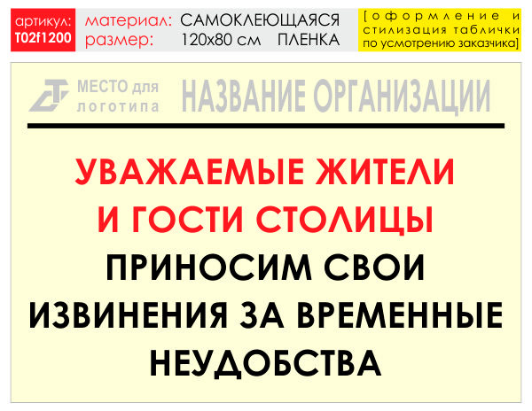 Баннер «Извинения», T02 (самоклеящаяся плёнка, 120х90 см) в Бердске купить
