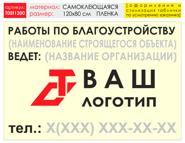 Баннер «Работы по благоустройству», T05 (самоклеящаяся плёнка, 120х90 см) в Бердске купить