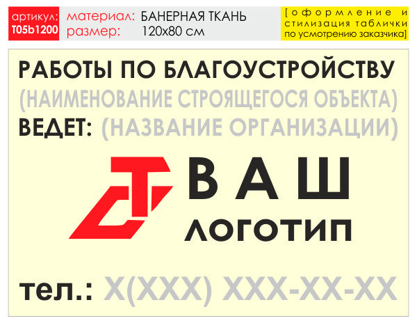 Баннер «Работы по благоустройству», T05 (баннерная ткань, 120х90 см) в Бердске купить