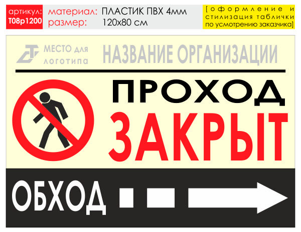 Баннер «Обход справа», T08 (пластик 4 мм, 120х90 см) в Бердске купить