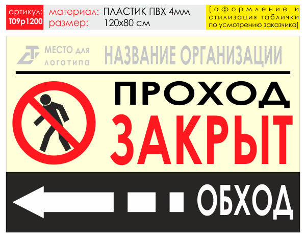 Баннер «Обход слева», T09 (пластик 4 мм, 120х90 см) в Бердске купить