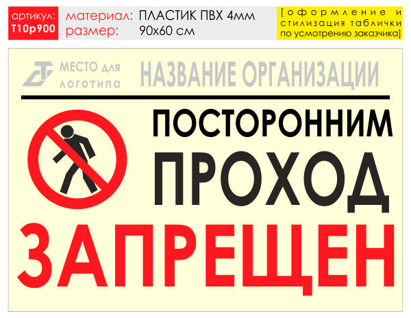 Баннер «Проход запрещен», T10 (пластик 4 мм, 90х60 см) в Бердске купить