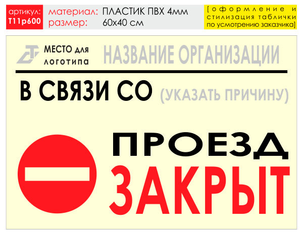 Баннер «Проезд закрыт», T11 (пластик 4 мм, 60х40 см) в Бердске купить