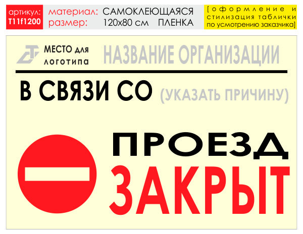 Баннер «Проезд закрыт», T11 (самоклеящаяся плёнка, 120х90 см) в Бердске купить