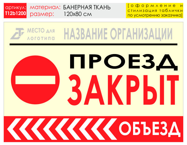 Баннер «Объезд слева», T12 (баннерная ткань, 120х90 см) в Бердске купить