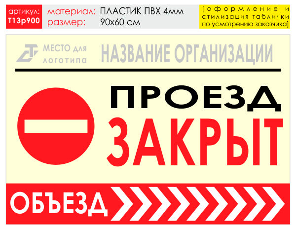 Баннер «Объезд справа», T13 (пластик 4 мм, 90х60 см) в Бердске купить