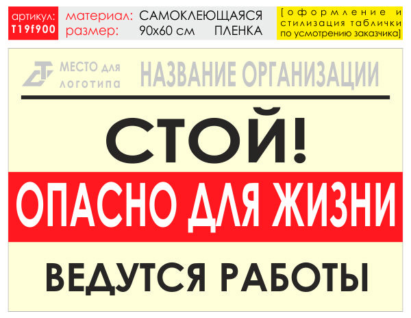 Баннер «Опасно для жизни», T19 (самоклеящаяся плёнка, 90х60 см) в Бердске купить