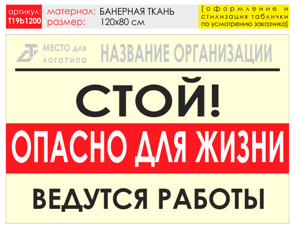Баннер «Опасно для жизни», T19 (баннерная ткань, 120х90 см) в Бердске купить