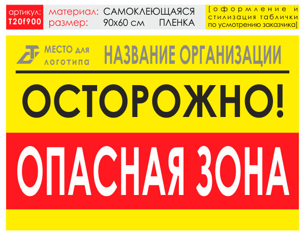 Баннер «Опасная зона», T20 (самоклеящаяся плёнка, 90х60 см) в Бердске купить