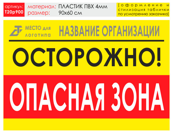 Баннер «Опасная зона», T20 (пластик 4 мм, 90х60 см) в Бердске купить