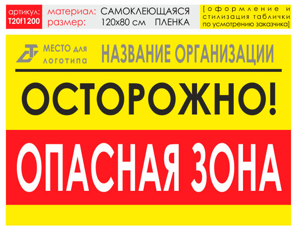 Баннер «Опасная зона», T20 (самоклеящаяся плёнка, 120х90 см) в Бердске купить