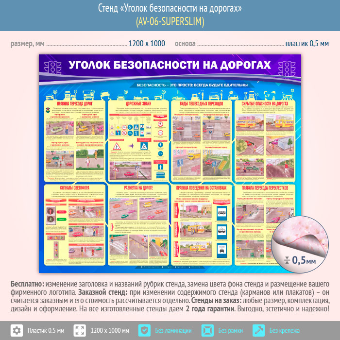 Стенд «Уголок безопасности на дорогах» (AV-06-SUPERSLIM) в Бердске купить