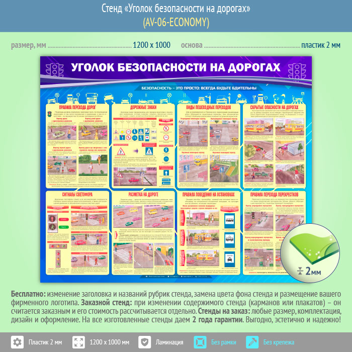 Стенд «Уголок безопасности на дорогах» (AV-06-ECONOMY) в Бердске купить