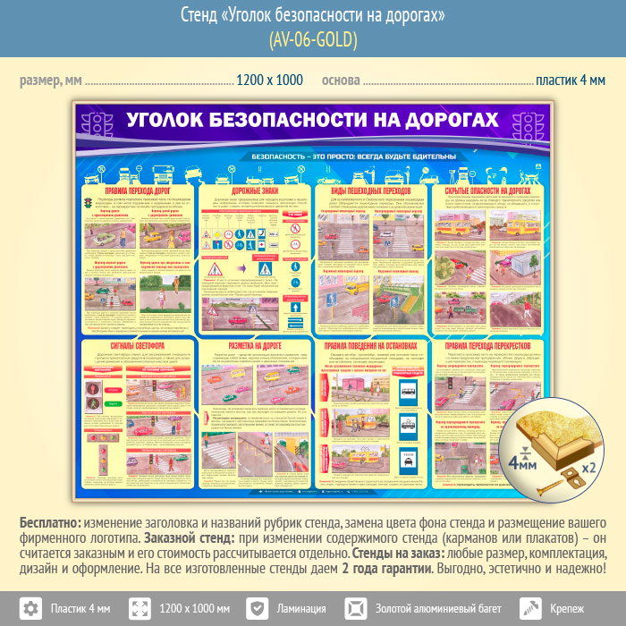 Стенд «Уголок безопасности на дорогах» (AV-06-GOLD) в Бердске купить