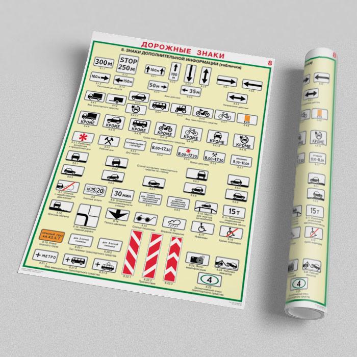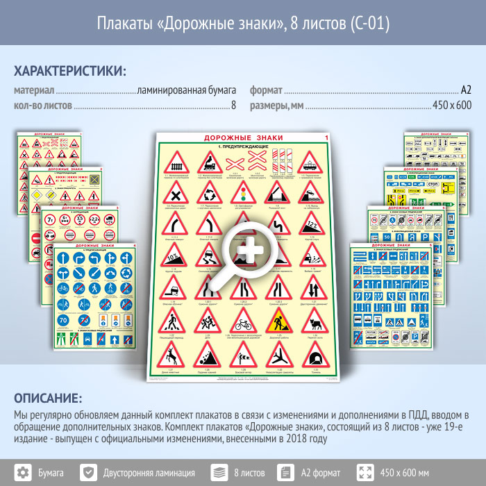 Плакаты «Дорожные знаки» (С-01, ламинированная бумага, А2, 8 листов) в Бердске купить