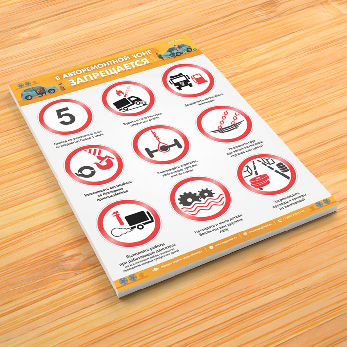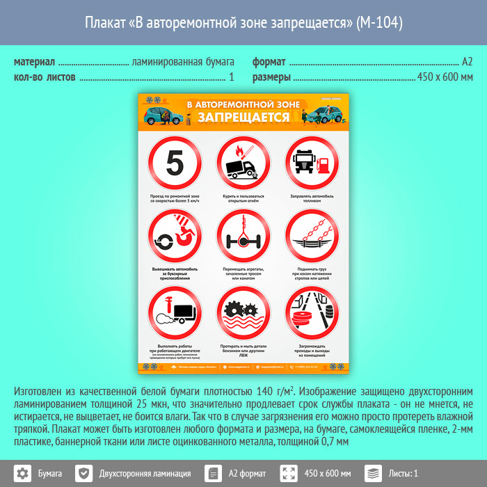 Плакат «В авторемонтной зоне запрещается» (М-104, ламинированная бумага, А2, 1 лист) в Бердске купить