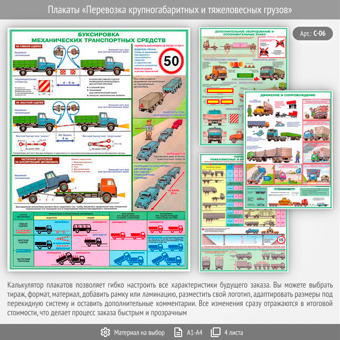 Плакаты «Перевозка крупногабаритных и тяжеловесных грузов» (С-06, 4 листа) в Бердске купить