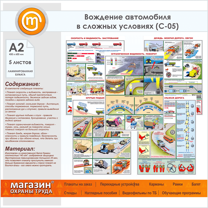 Плакаты «Вождение автомобиля в сложных условиях» (С-05, ламинированная бумага, А2, 5 листов) в Бердске купить