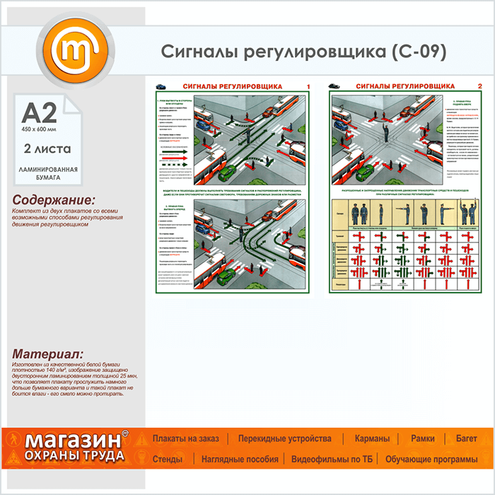Плакаты «Сигналы регулировщика» (С-09, ламинированная бумага, А2, 2 листа) в Бердске купить