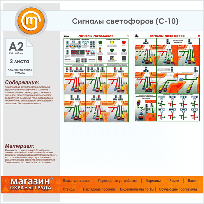 Плакаты «Сигналы светофоров» (С-10, ламинированная бумага, А2, 2 листа) в Бердске купить