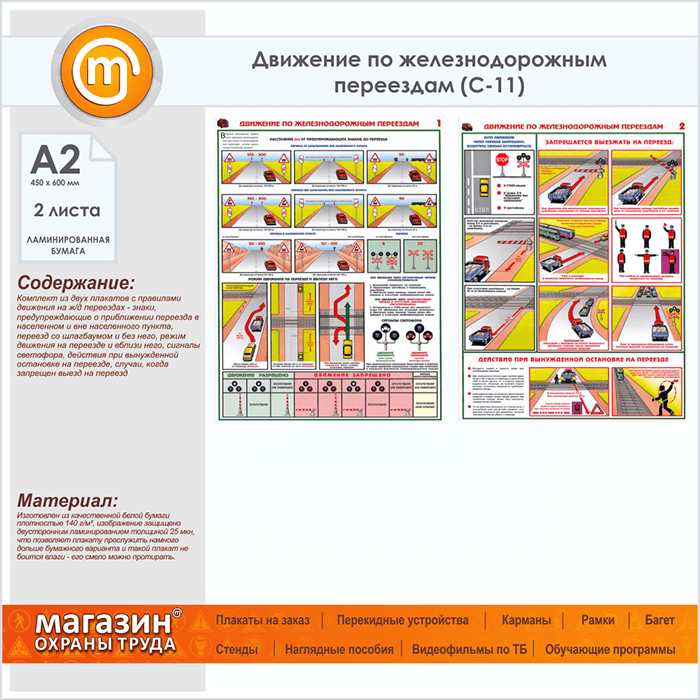 Плакаты «Движение по железнодорожным переездам» (С-11, ламинированная бумага, А2, 2 листа) в Бердске купить