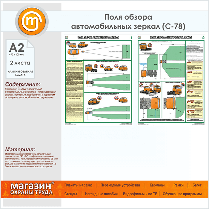 Плакаты «Поля обзора автомобильных зеркал» (С-78, ламинированная бумага, А2, 2 листа) в Бердске купить