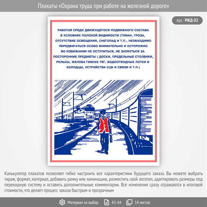 Плакаты «Охрана труда при работе на железной дороге» (РЖД-02, 14 листов) в Бердске купить