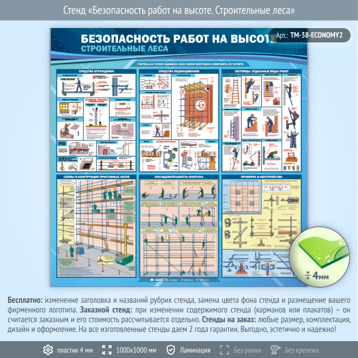 Стенд «Безопасность работ на высоте. Строительные леса» (TM-38-ECONOMY2) в Бердске купить