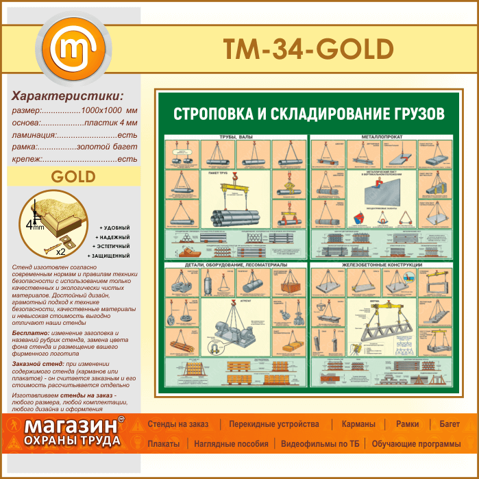 Стенд «Строповка и складирование грузов» (TM-34-GOLD) в Бердске купить