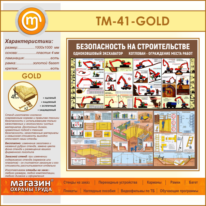 Стенд «Безопасность земляных работ. Экскаватор, котлован» (TM-41-GOLD) в Бердске купить