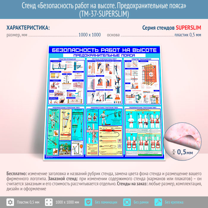Стенд «Безопасность работ на высоте. Предохранительные пояса» (TM-37-SUPERSLIM) в Бердске купить