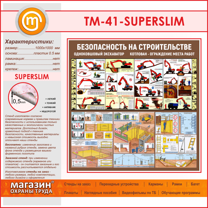 Стенд «Безопасность земляных работ. Экскаватор, котлован» (TM-41-SUPERSLIM) в Бердске купить