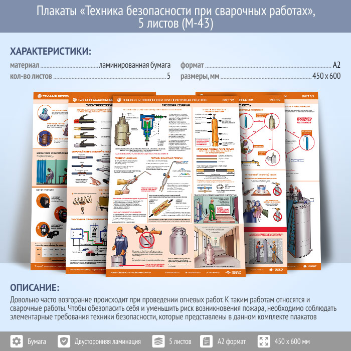 Плакаты «Техника безопасности при сварочных работах» (М-43, ламинированная бумага, А2, 5 листов) в Бердске купить