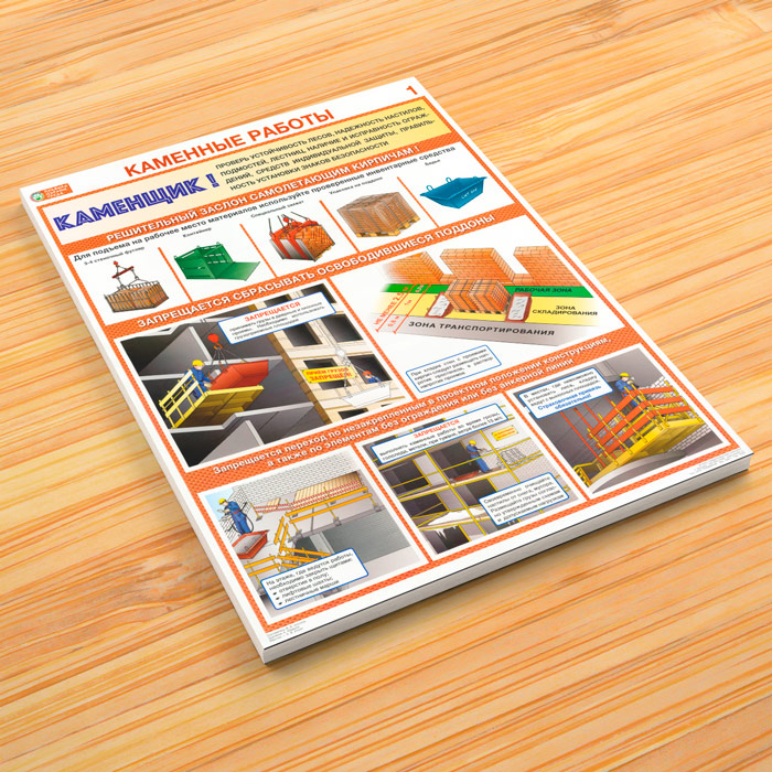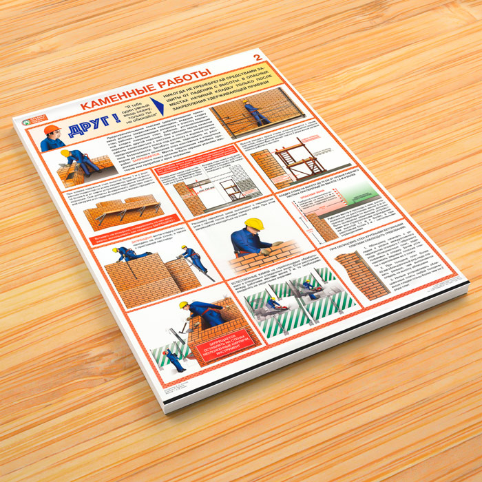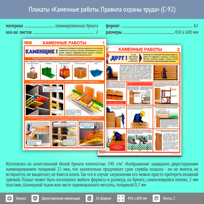 Плакаты «Каменные работы. Правила охраны труда» (С-92, ламинированная бумага, А2, 2 листа) в Бердске купить
