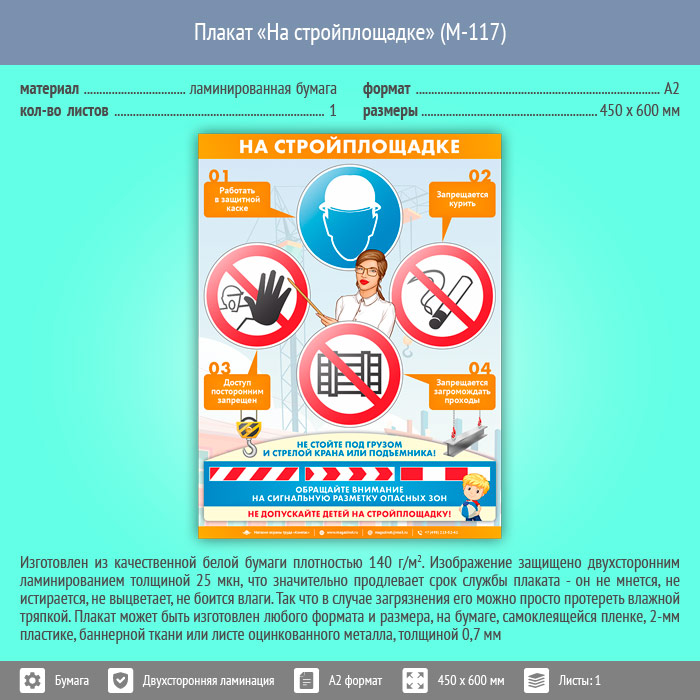 Плакат «На стройплощадке» (М-117, ламинированная бумага, А2, 1 лист) в Бердске купить