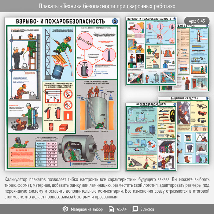 Плакаты «Техника безопасности при сварочных работах» (С-43, 5 листов) в Бердске купить