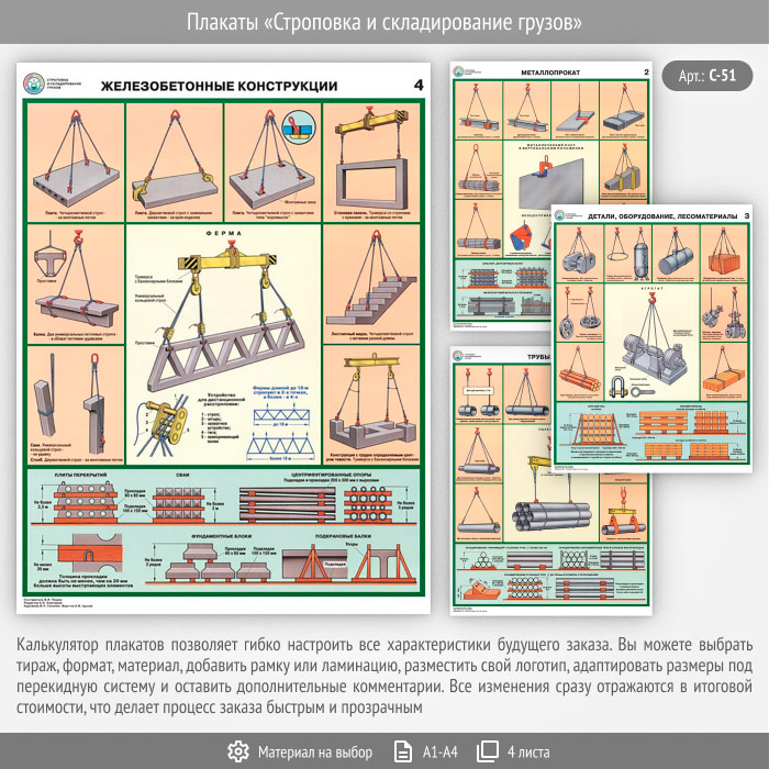 Плакаты «Строповка и складирование грузов» (С-51, 4 листа) в Бердске купить