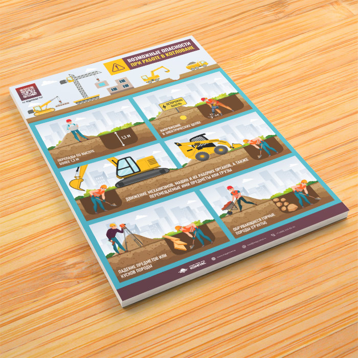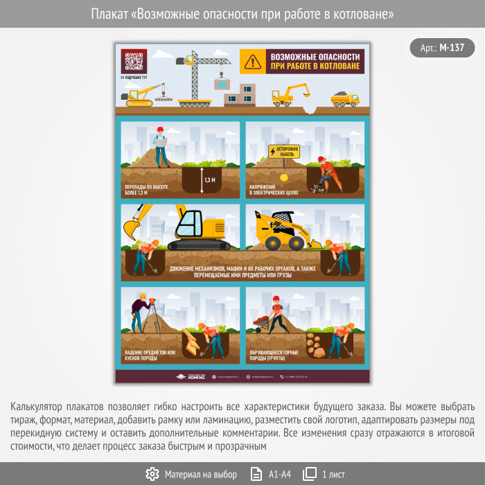 Плакат «Возможные опасности при работе в котловане» с QR (М-137, 1 лист) в Бердске купить