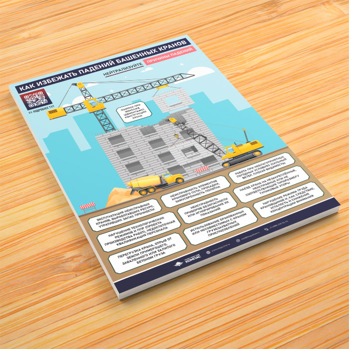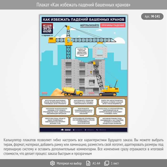 Плакат «Как избежать падений башенных кранов» с QR (М-141, 1 лист) в Бердске купить