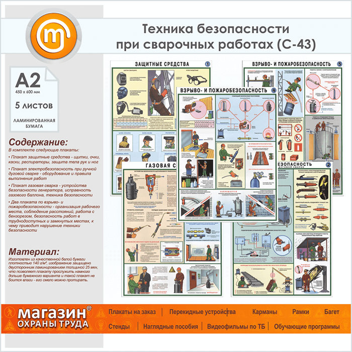 Плакаты «Техника безопасности при сварочных работах» (С-43, ламинированная бумага, А2, 5 листов) в Бердске купить